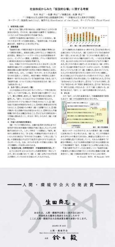 2014-06-09 人間-環境学会(MERA)発表賞受賞 ゼミ2014 4年生・生田尚志くんが3年時にゼミ論で進めた+卒業研究で進行中の「社会形成からみた「仮設的な場」に関する考察」が人間・環境学会(MERA)発表賞を受賞いたしました!!